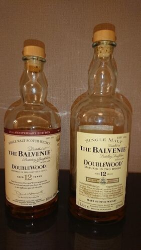 ついに注文していた12年ダブルウッドが我が家にやって来ました。ブログの最初に紹介したのが旧ボトル(向かって右側)、今回購入したのは新ボトル(同左側)です。25周年のアニバーサリーエディションです。 最初のブログで旧ボトルをオークションで落札した…