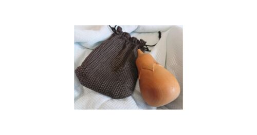 たまにオークションで木製の蛙の置物やお茶入れなどを買ったりします。家族からは不評で、引き出しにしまいっきりです。 仕覆のつもりで作った巾着は、作り始めの頃だったので下手くそです。でも気に入った木製のナスの細工物でしたので、傷を付けたくないと…