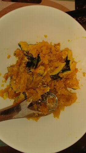 今日はウィスキーのおつまみでかぼちゃを取り上げます。かぼちゃが駅前のスーパーで安かったので、半分のを買ってきました。電子レンジで9分ほど(6分やって少し硬かったので追加で3分)チンして皮ごと押しつぶします。 ウィスキーを大さじ一杯いれてさらに…