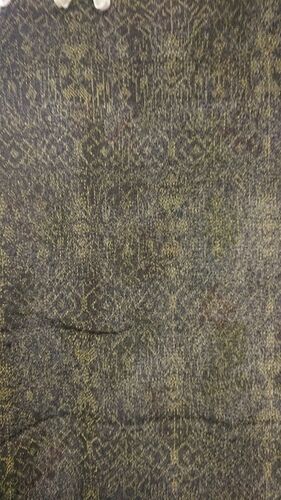 今日は、幾何学模様の本塩沢です。随分昔に入手したもので、買った当初はこの生地(着物)が本塩沢紬という事が分らずに購入しました。 かなり暗く映っていますが、もう少し明るい緑色です。初めてこの生地を触った時の印象が今も忘れられません。化繊かな、…