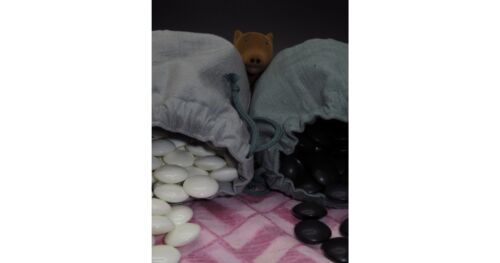昨日、一昨日と丸底付巾着を2個作りました。 先日落札した重要無形文化財の結城紬の単衣の着物をほどき、衽の部分を縫い合わせ、うすい空色の丸底付巾着も作ってみました。 納まり具合を確認するために、碁石を入れてみました。碁石などを入れると、安定感が…