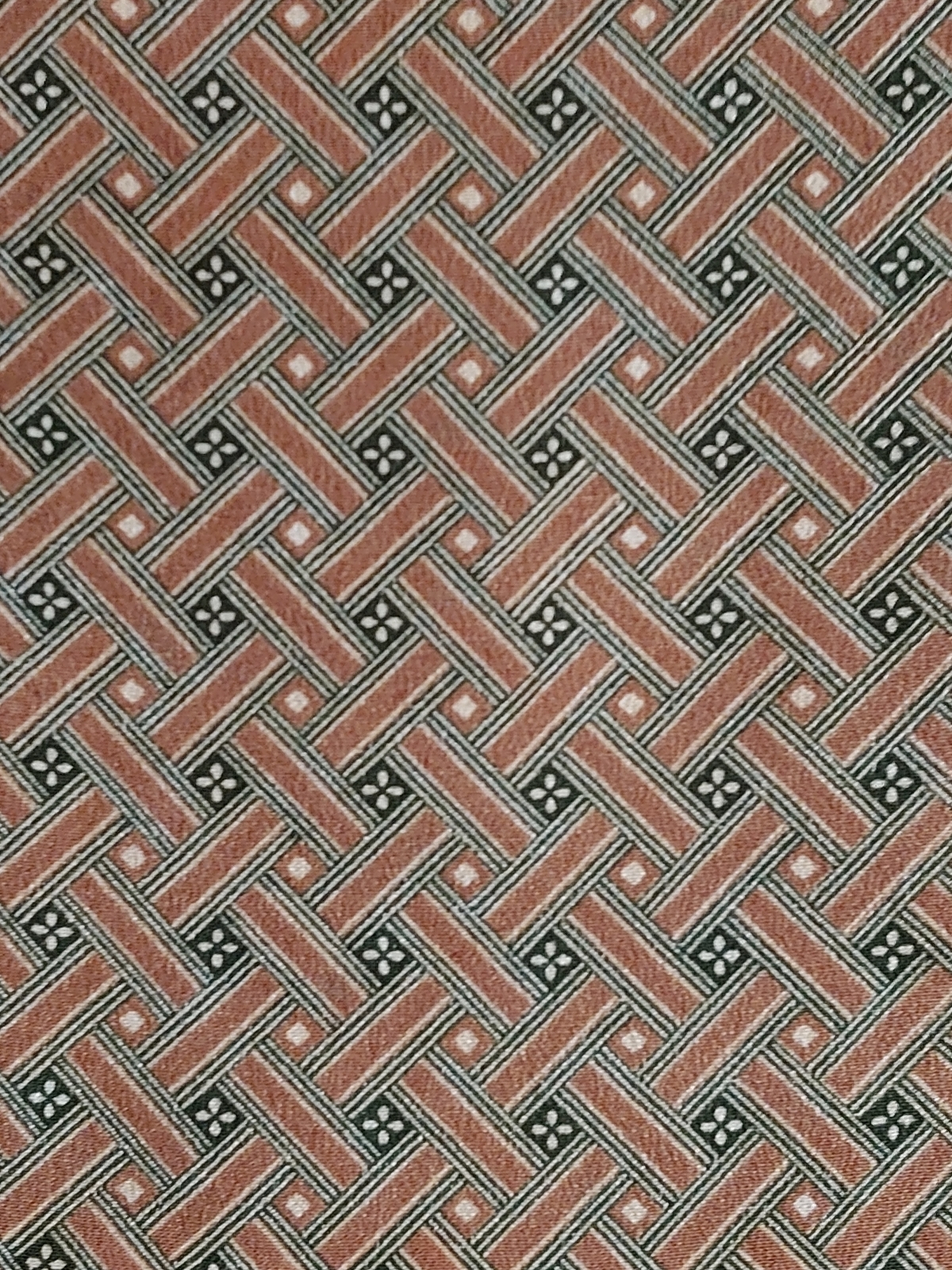 この生地は、模様がとても素敵だと思います。卓上時計やカレンダーをのせて、使っても良いと思います。