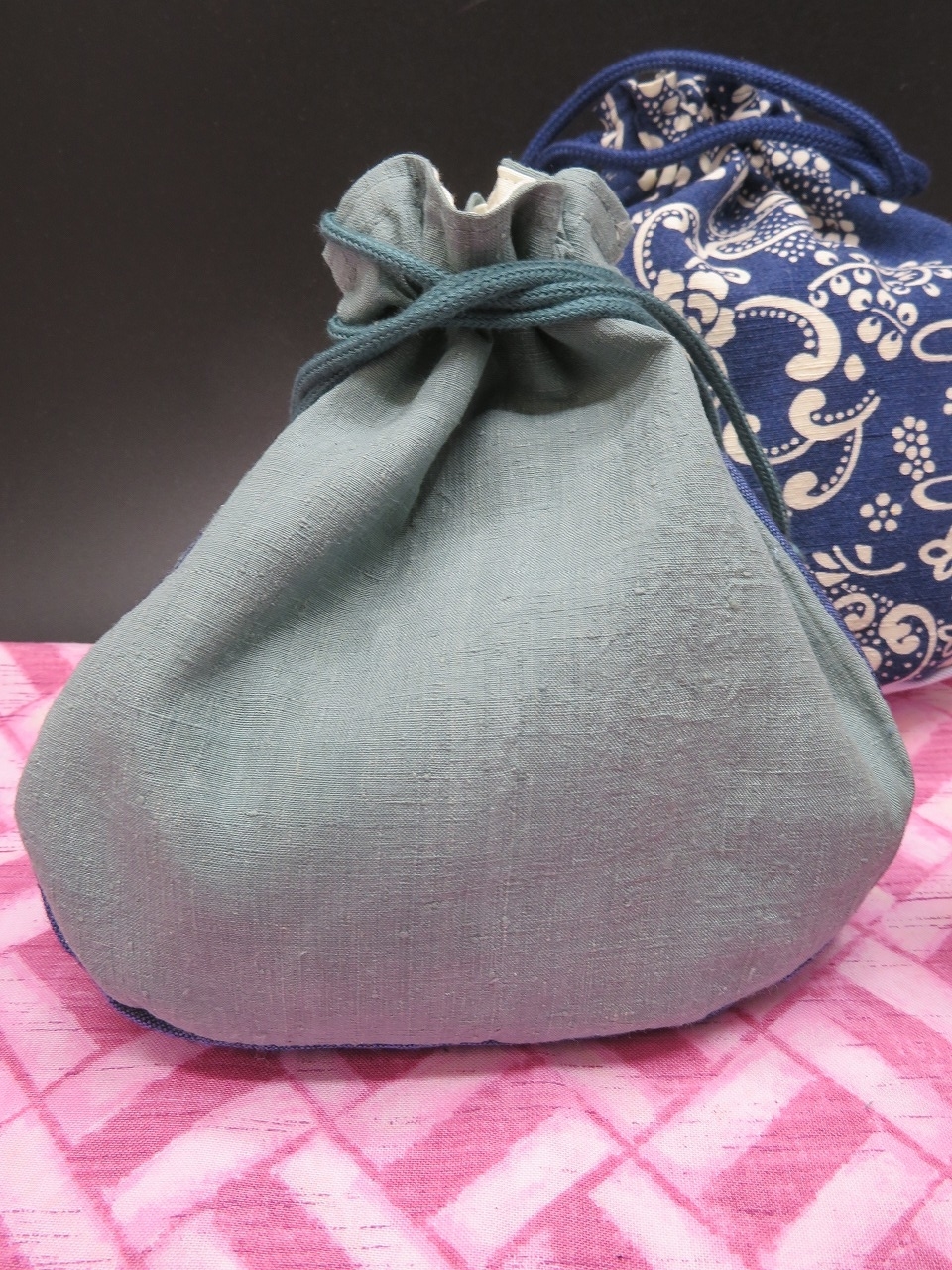 それにしても、技術が下手でも、生地の良さがそれをカバーしてくれれますね。自分で使う分には、十分なので素敵な結城紬の生地で作った小さな底付巾着、いろいろ活用していきたいと思います。