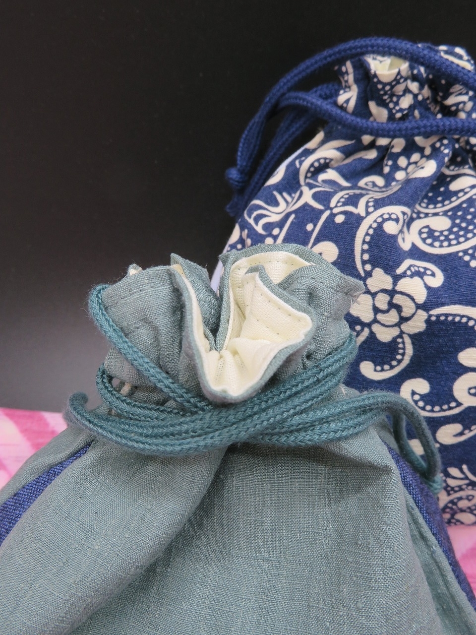 巾着は底なしのものも含めて、数作るとスキルアップして来ると思います。自分の技術が向上するだけでなく、新たな発見も生まれると思います。