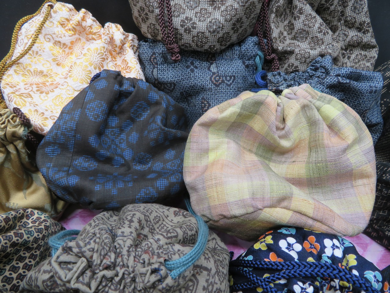 父の入院と、仕事とバタバタしている毎日ですが、なぜか丸底付巾着だけは少しづつ、作っています。