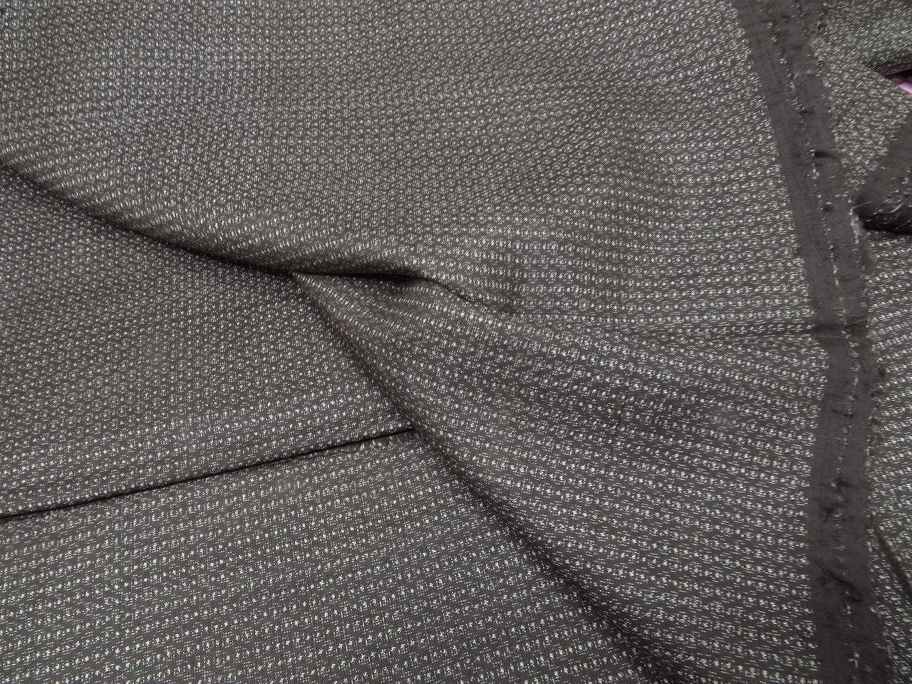 地色はこげ茶色です。状態はとても良いですが、かなり古い生地です。