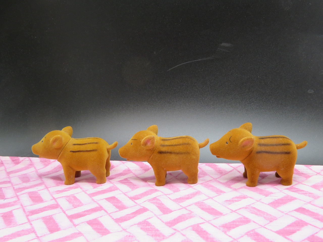 例によってウリボウにも登場してもらい、生地の色合いを見るうえでの、参考にしていただけばと思います。ウリボウは茶色です。