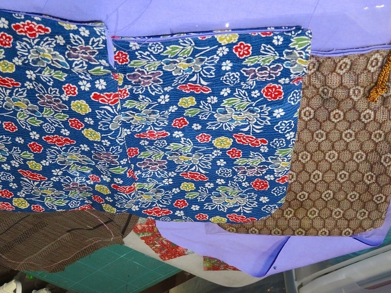 製作に関しては、だいぶ勘も戻って慣れて来ましたので、まずは裏地を140枚カットして・・・その後、小紋には接着芯を貼って、紬の生地は厚いものを選んで、でも薄いものにはやはり接着芯を貼って・・・・ううっ終わらない。