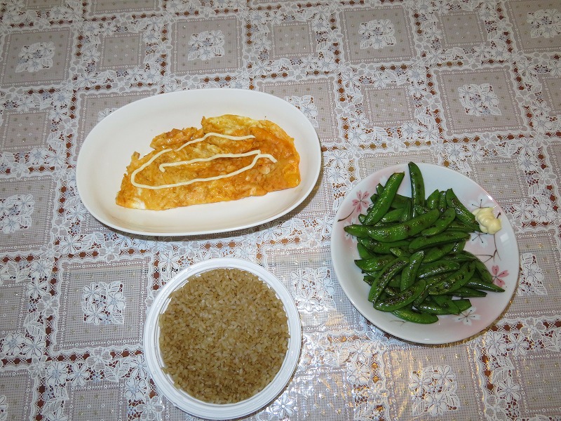 付け合わせで、スナップエンドも炒めました。これにもマヨネーズを少し添えてみます。豆は多少サラダオイルをひきましたが、塩コショウもしていません。なるべく素材のまま味わうようにしています。甘くておいしいですよね。