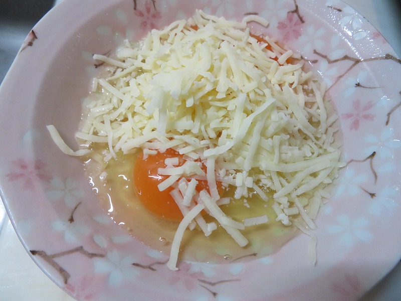 時間が無いなら、とろけるチーズも最初にタマゴに入れて一緒に混ぜて、焼いてもOKです。