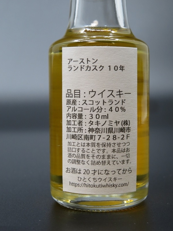 今日は、「アーストンランドカスク10年」をご紹介いたします。Shot Bar Online HITOKUTI WHISKYさんの量り売りです。