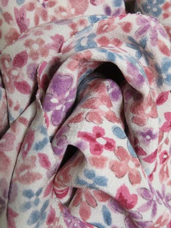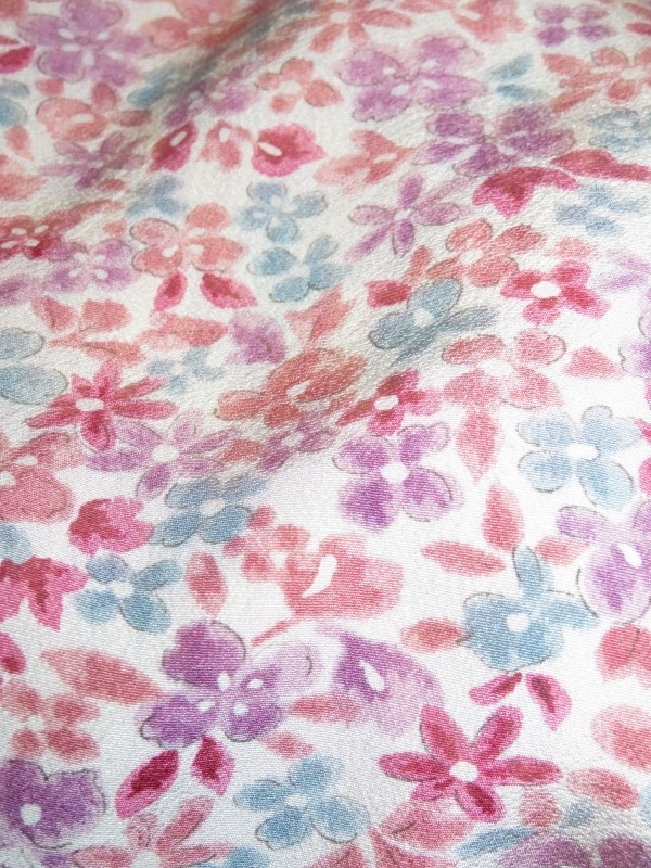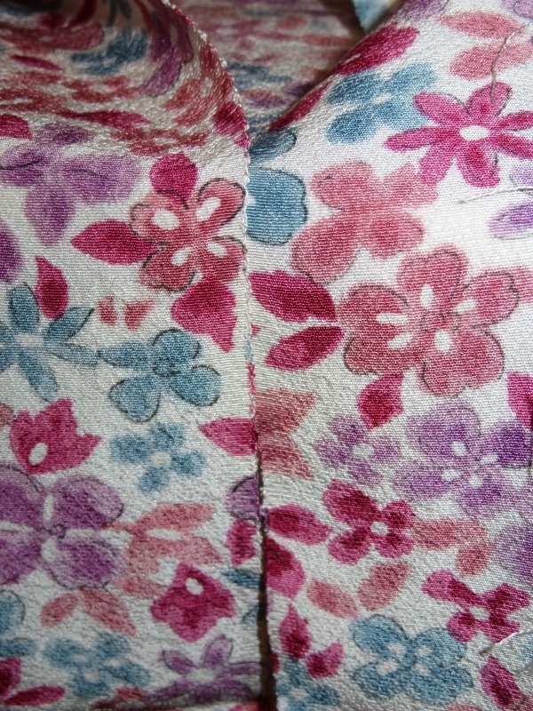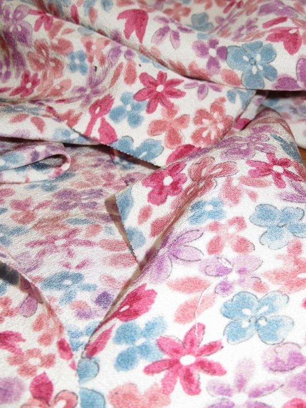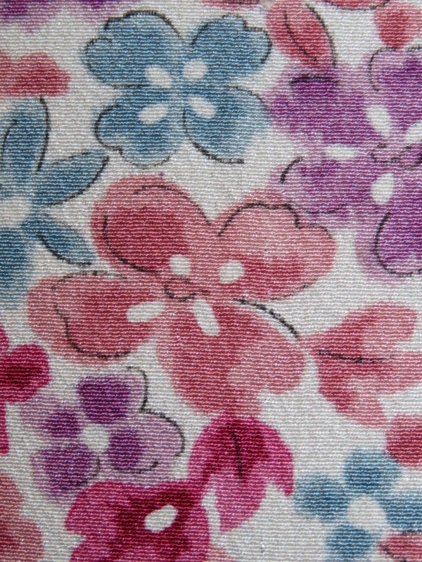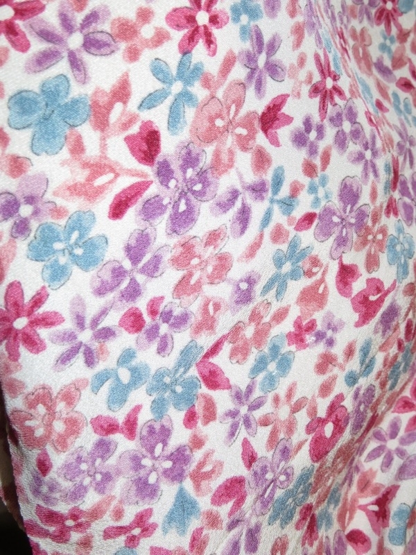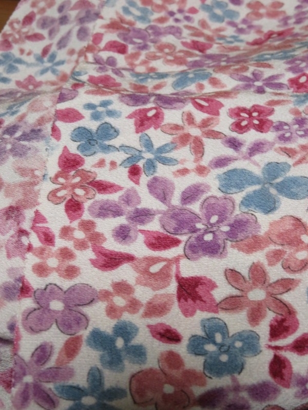 今日も、8月の中旬に落札した着物のセットから、カラフル花模様交織着物生地をご紹介いたします。