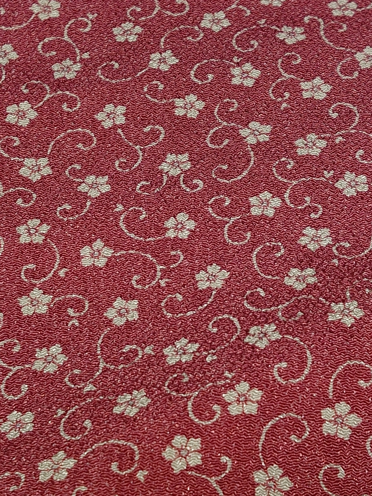 こちらの生地は、先日このブログでもご紹介しています。交織の生地だと思いますが、縮緬調で、小紋の生地としてはとっても素敵なデザインだと思います。