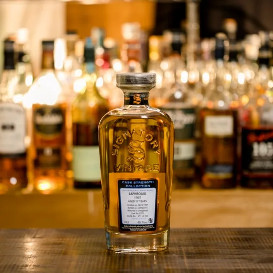 『シグナトリー社のカスクストレングスコレクションより、ラフロイグ17年、ホグスヘッド。1997年10月蒸留、2015年9月瓶詰。カスクストレングス。』