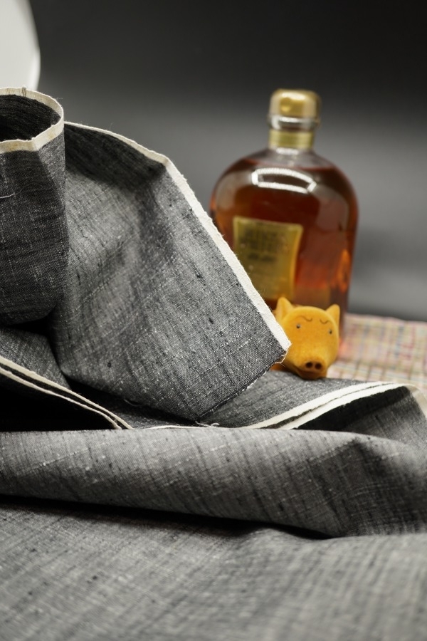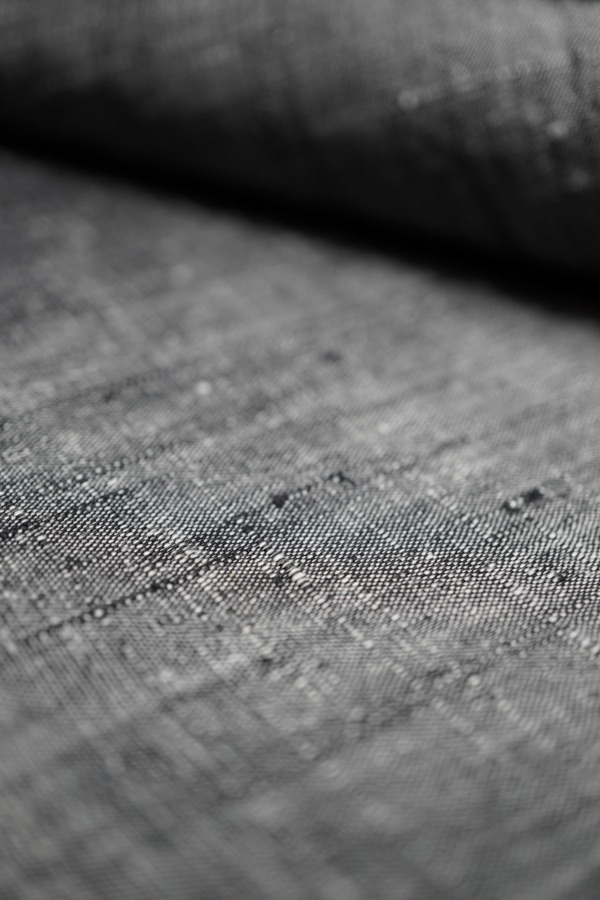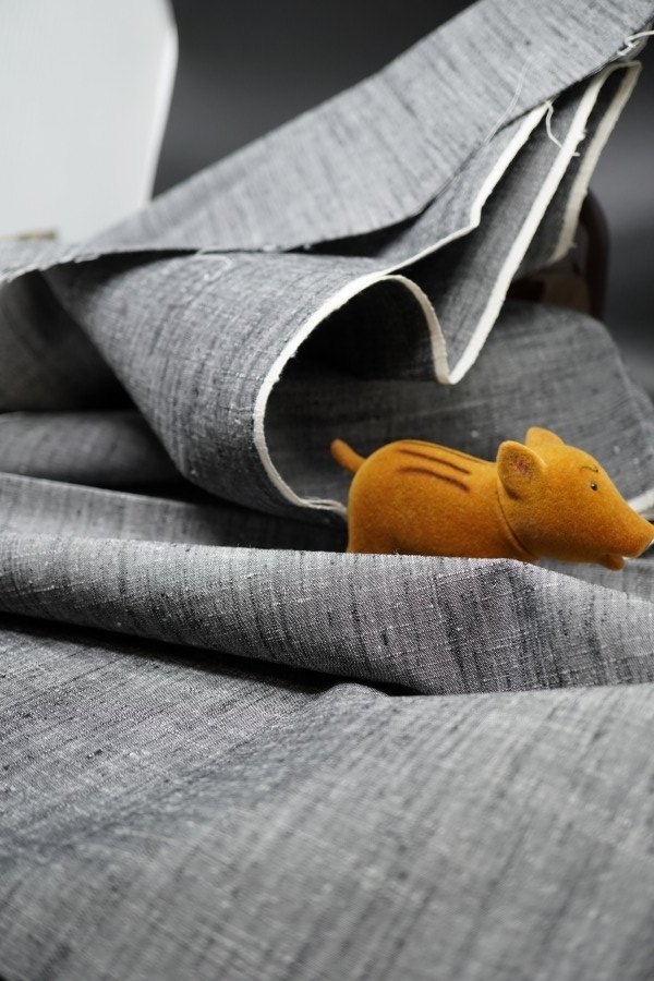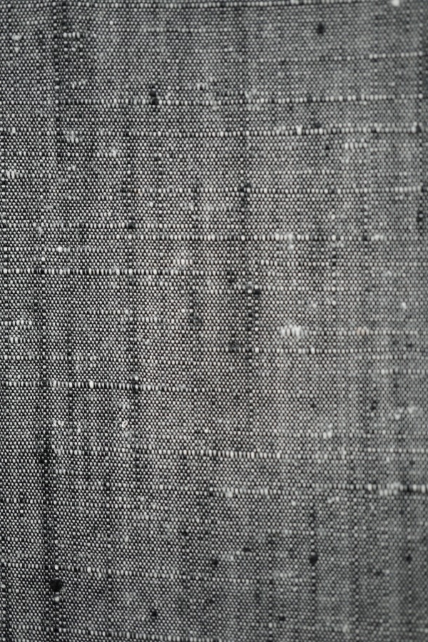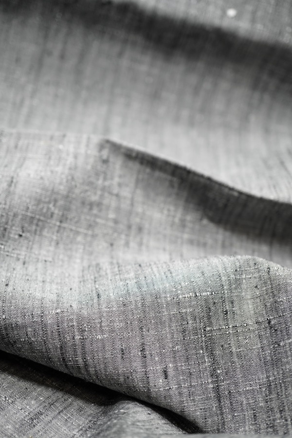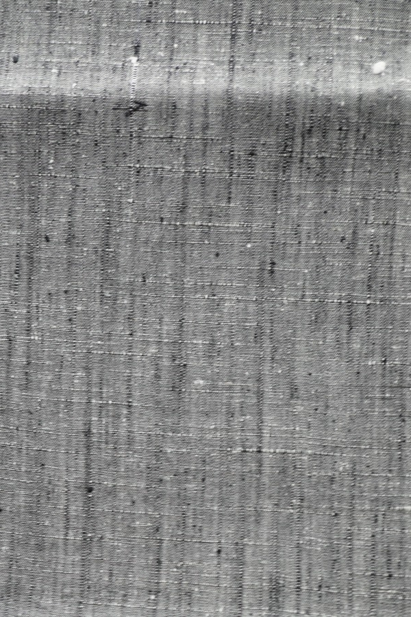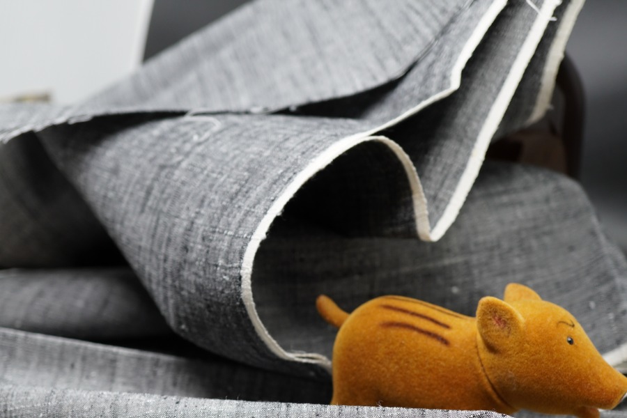 落ち着いたグレーが素敵な真綿紬の生地です。ふわっとした触り心地を期待していたのですが、ごわっとした感じで、木綿の生地のような感触です。