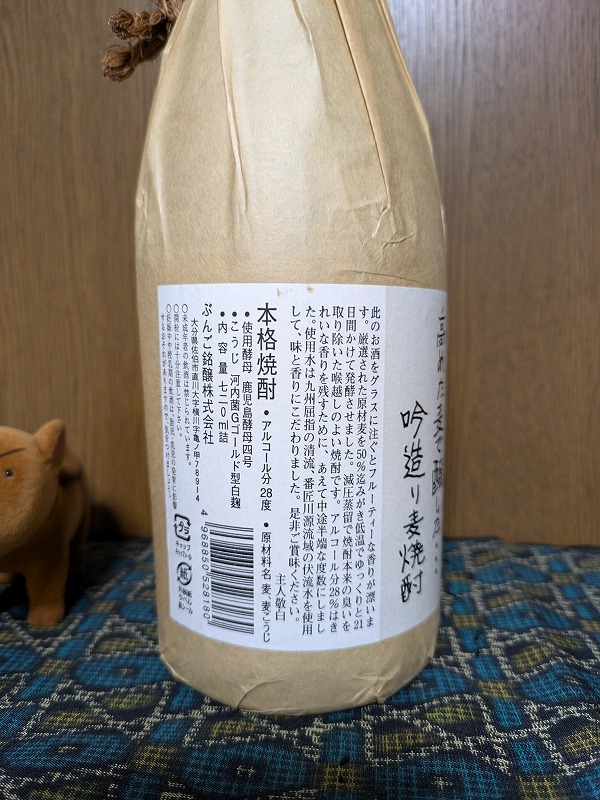ラベルのサブタイトルに吟造り麦焼酎と書かれています。