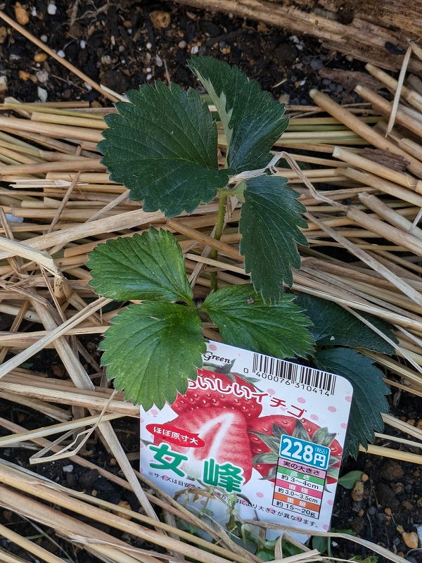 さて、イチゴの苗ですが、気温の寒暖差が続く毎日ですから、保護のために藁を買ってきました。4束で千円近くしましたが、そのかいあってすこぶる元気になっています。